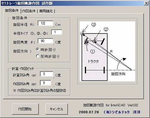 - 車両の単純旋回軌跡作図 Ver.0.1 (最新登録 2000/08/07)