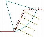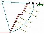 円弧くさび状のすべり土塊について無補強時および補強後の斜面安全率を自動計算します。 計算出来るのは一段のり面に限ります。 |