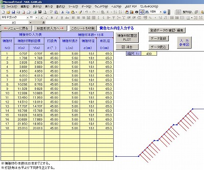 | D | 切土補強土工 斜面安定計算 直線くさび編 (NAIL-D31S.xls) |