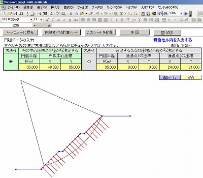 上記Bにすべり面と鉄筋の自動交点計算機能を持たせたもので、根入れ長やすべり面傾斜角を自動計算する。 | 同上 | FREE |