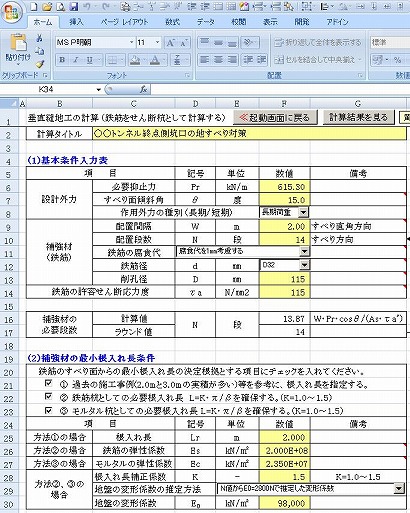 - 垂直縫地工法の計算 (せん断杭計算編)