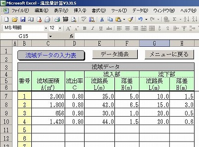 「流出量の計算」 Ver.3.0 (最新登録 2003/11/06)