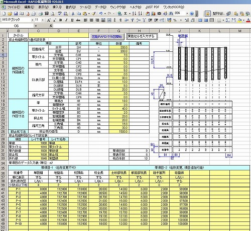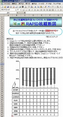 • 表計算ソフトEXCELに入力した数値データを使って、図脳RAPID に杭縦断図を自動作図します。