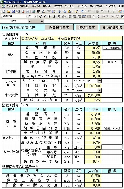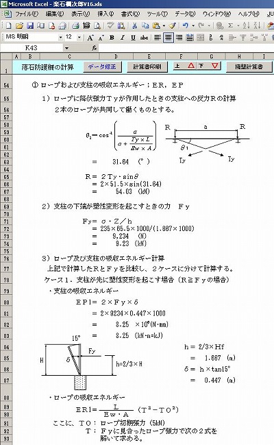- 落石対策便覧に準拠した落石防護柵計算エクセルソフトです。