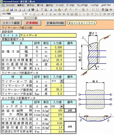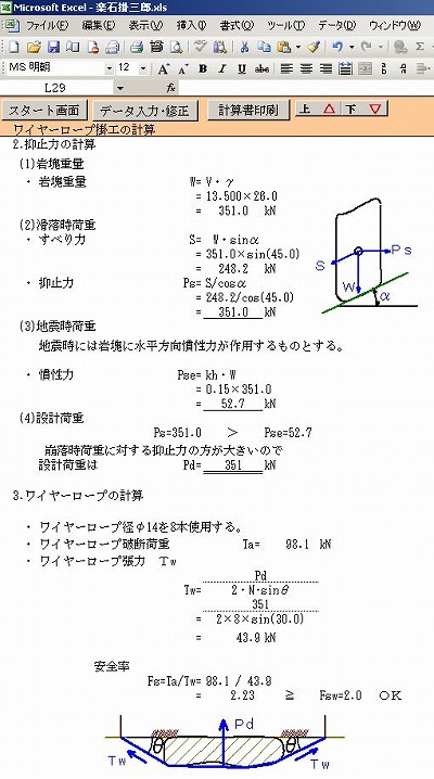 - 落石対策便覧に準拠したワイヤーロープ掛工の計算ソフトです。