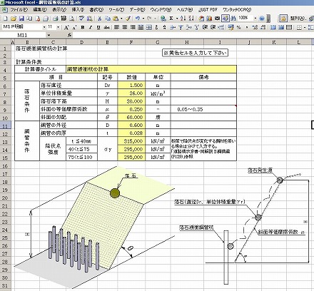 「落石緩衝鋼管杭の計算」 Ver.1.0 (最新登録 2007/04/20)