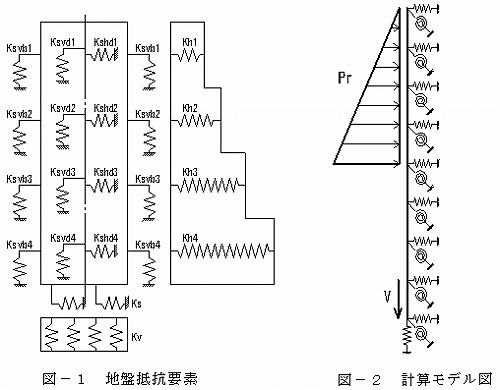 ※ケーソンの設計手法に関して、従来(H2道路橋示方書まで)は剛体として設計していました。現在も一部(林野庁関連業務)では剛体と設計している例も見受けられます。しかし、H8年道路橋示方書の改定で、ケーソンは弾性体として扱うこととなっています