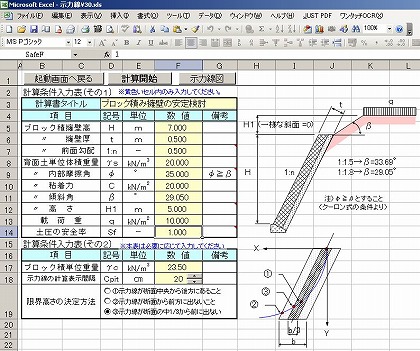 「示力線によるブロック積み擁壁安定検討」 Ver.3.0   (最新登録 2004/11/14)
