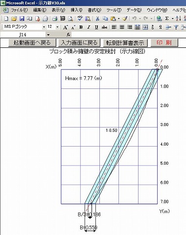 HOME >>  土木設計用ソフト一覧  >> 示力線によるブロック積み擁壁安定検討