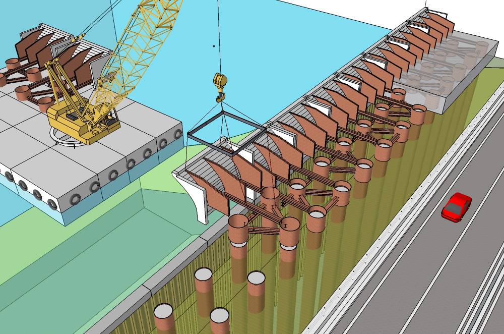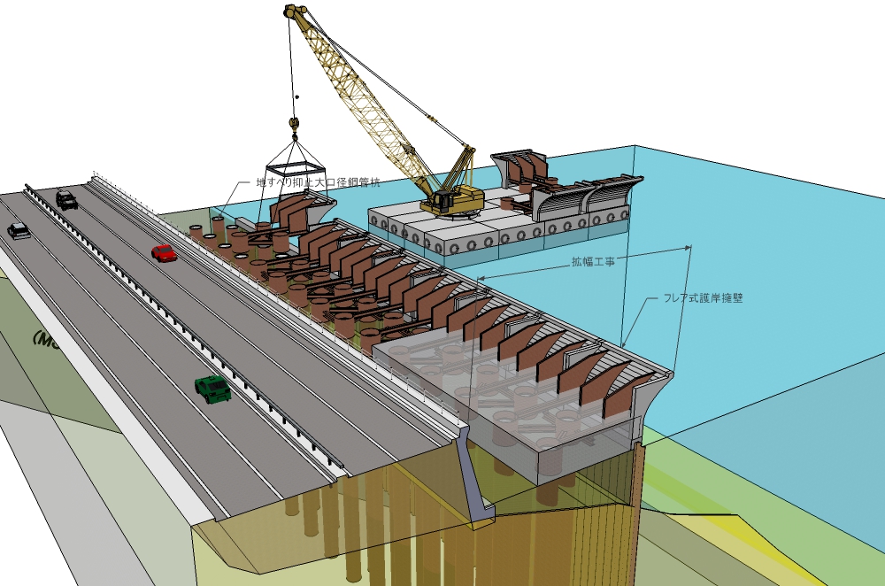 フレア式護岸擁壁を海上施工