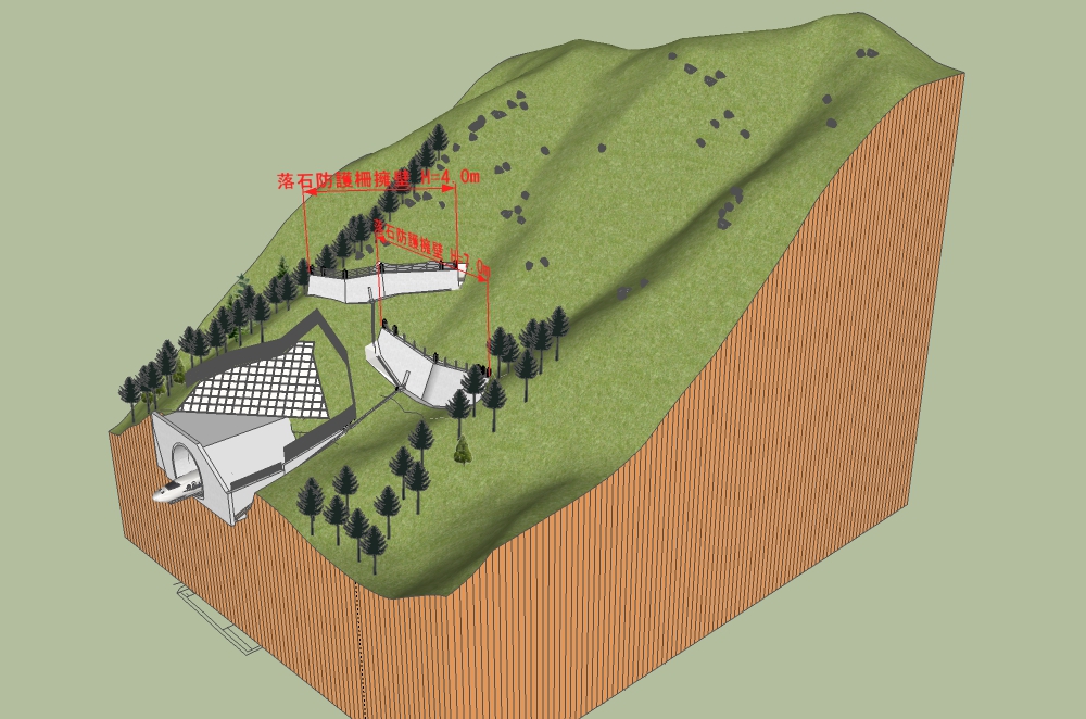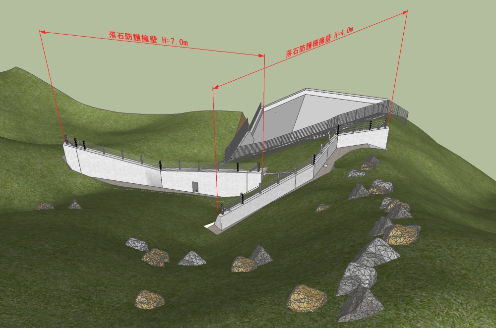 擁壁背後から望む